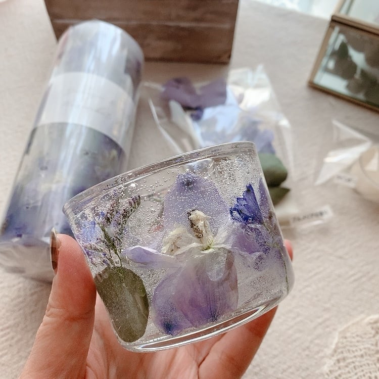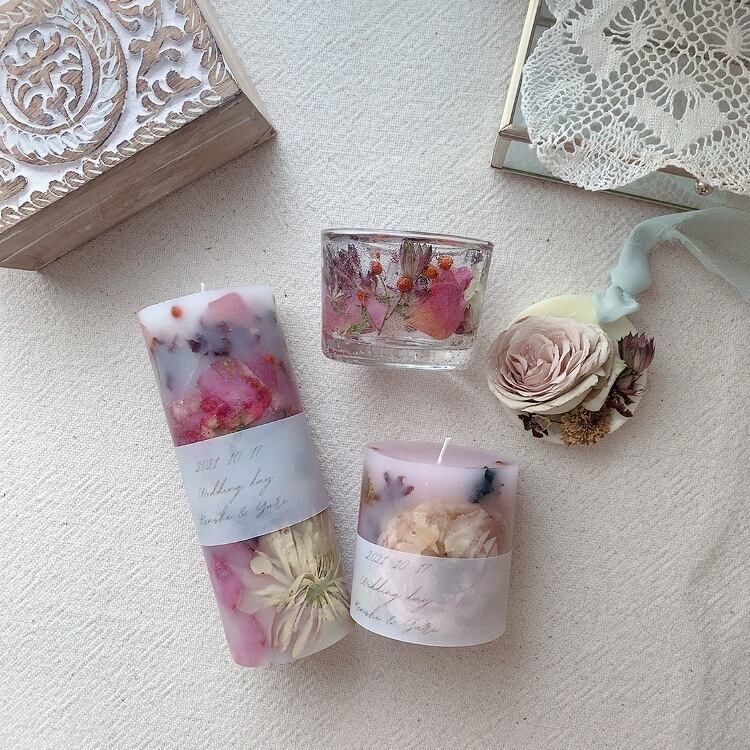 アフターブーケキャンドル《ジェルキャンドルホルダー①》 大切な記念のお花をドライフラワーにしてキャンドルをお作りします